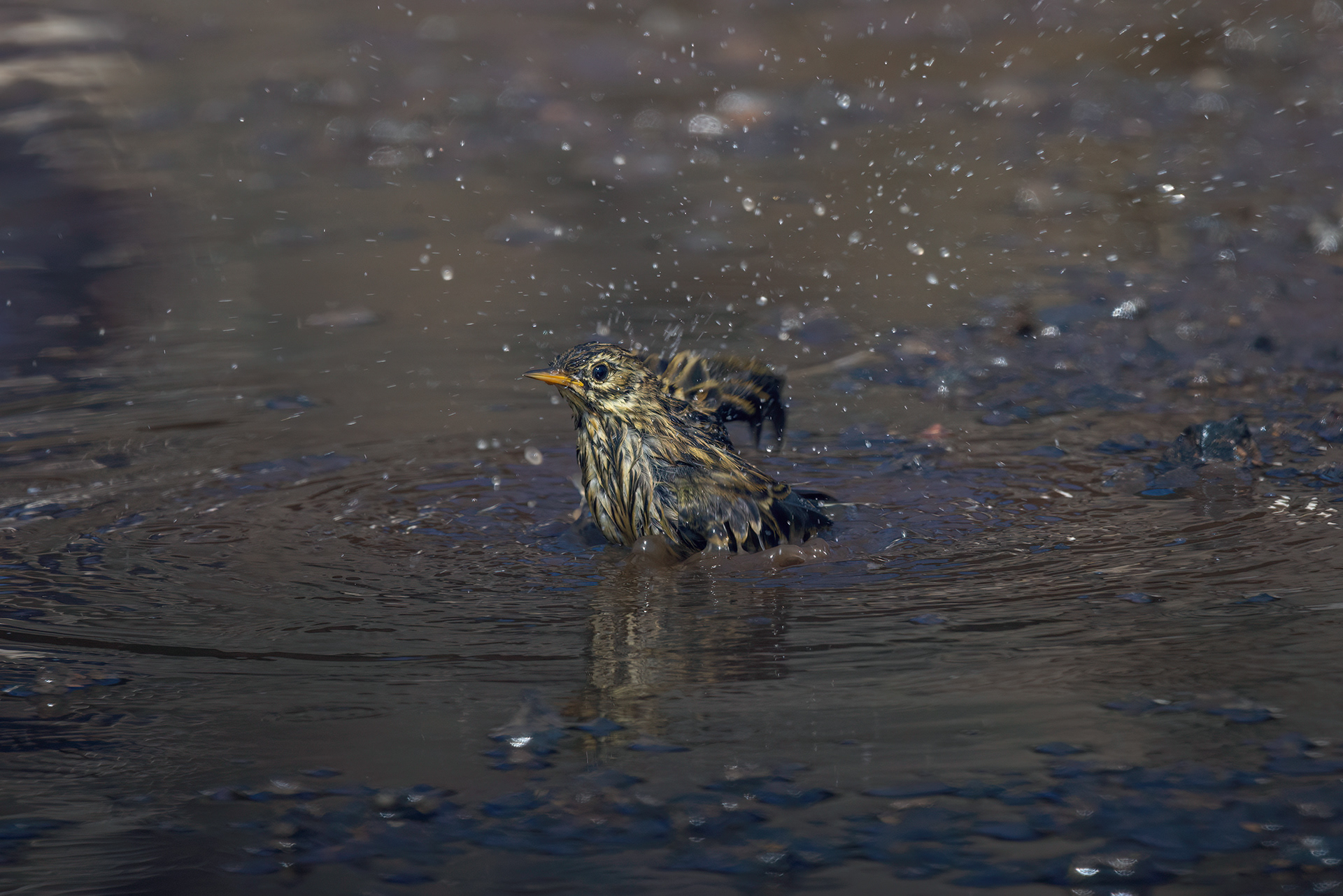 The Meadow Pipits were having a ball, making the most of this lovely cooling puddle on a hot day.
