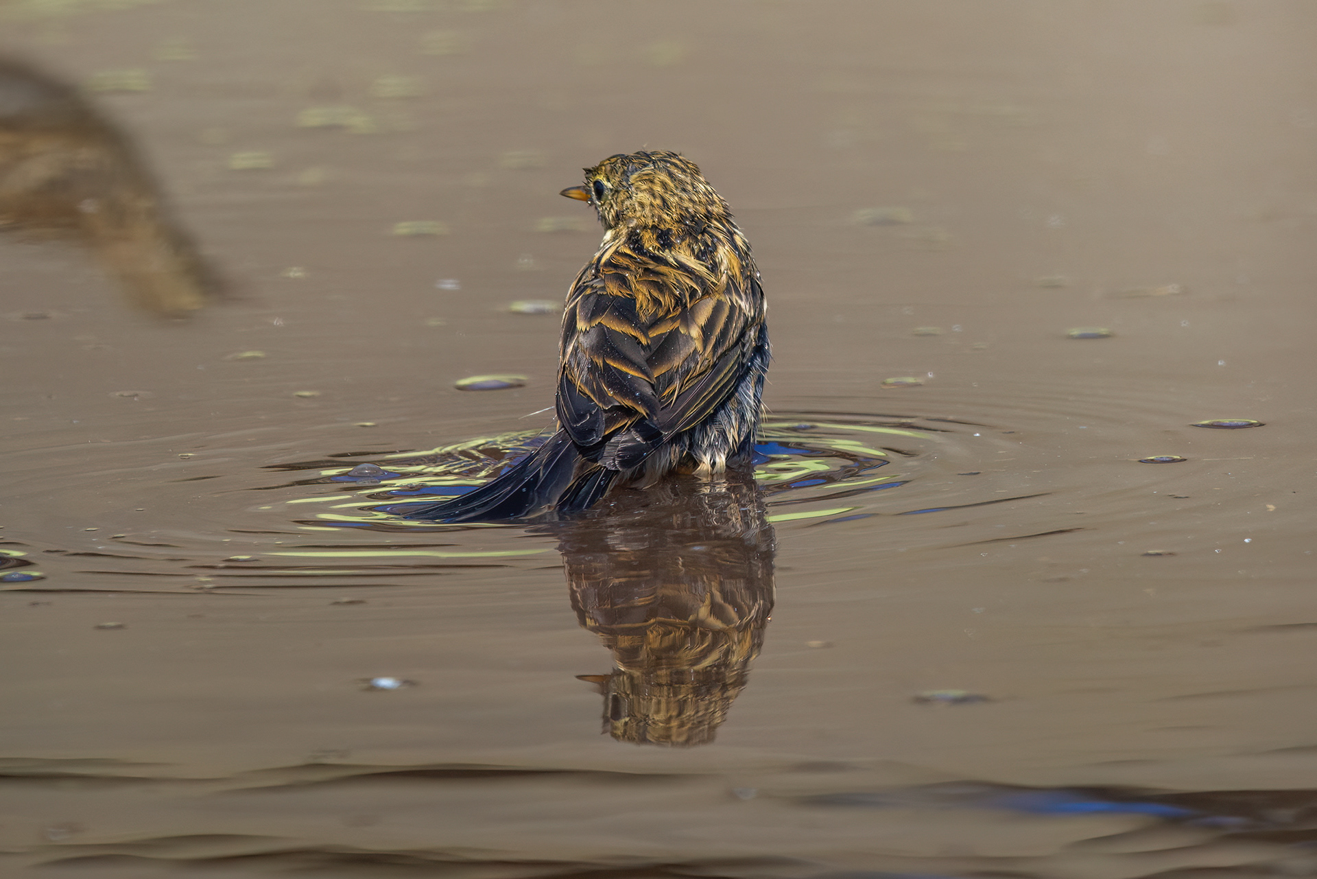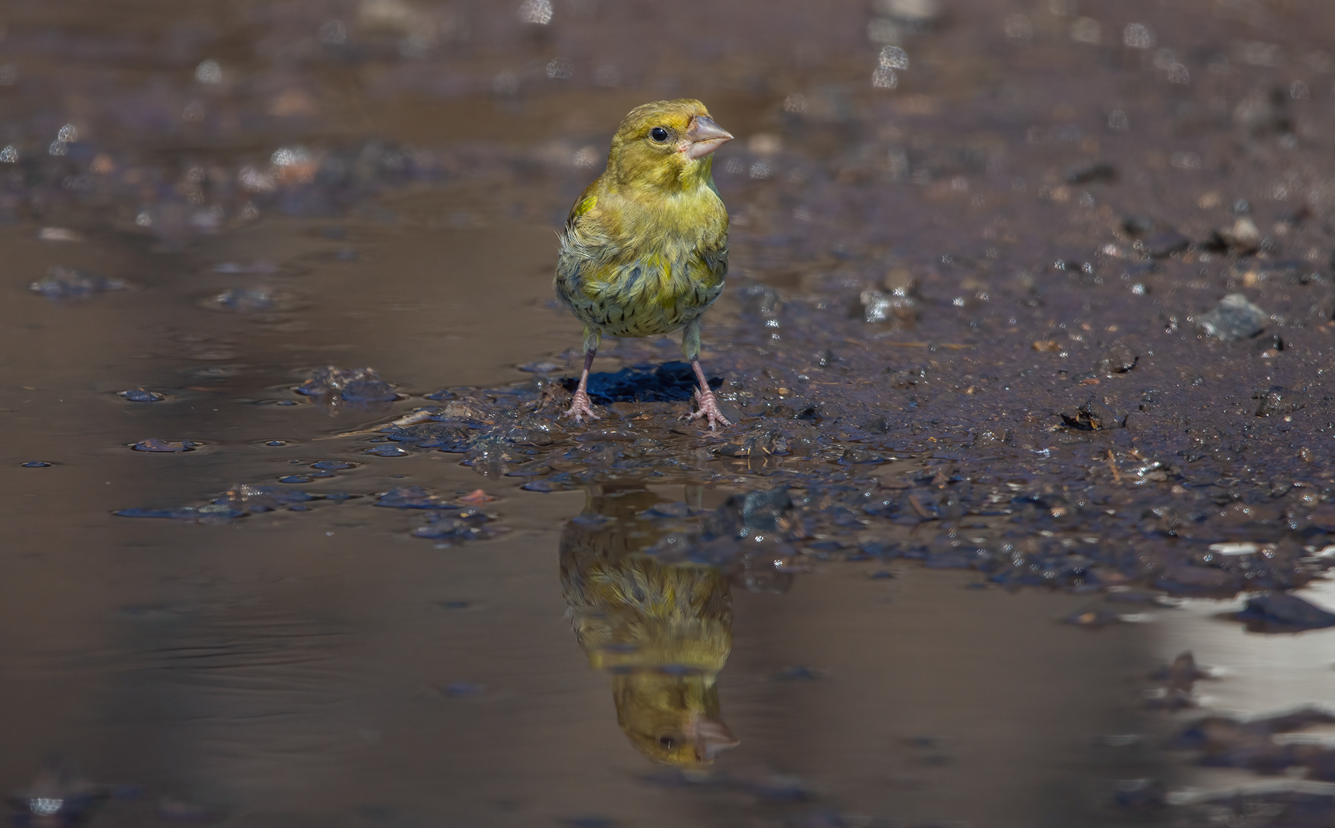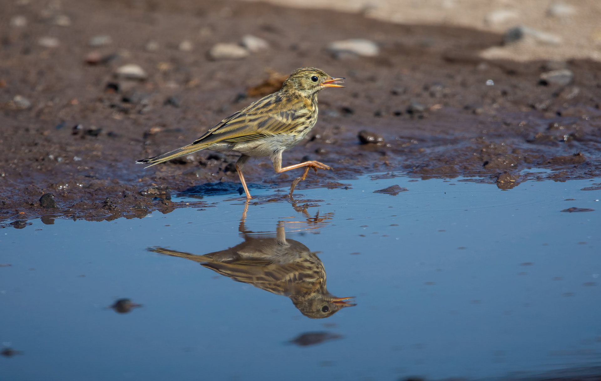 I don’t think this young Greenfinch actually had a dip, I have no photos so probably not. A young Meadow Pipit didn’t seem to understand what this was all about, hopping back and fore on the edge of the puddle and looking a bit confused by its own reflection.