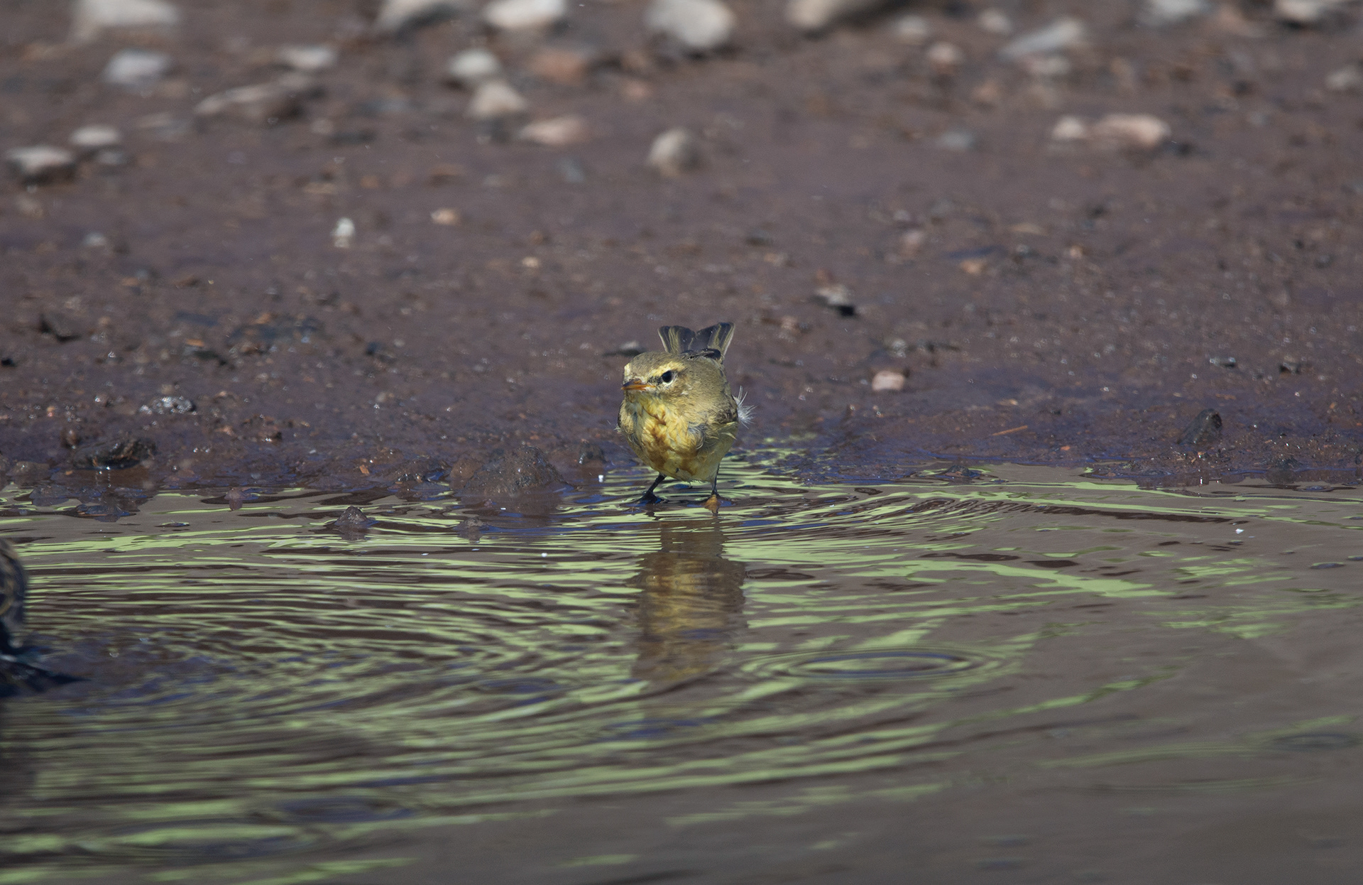 In the end it stayed around the outer, shallower edges of the puddle and enjoyed its own bath.