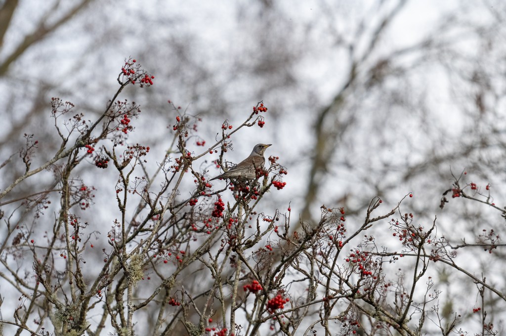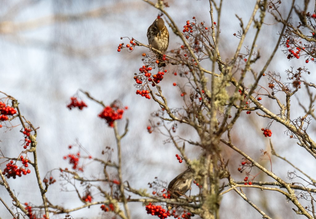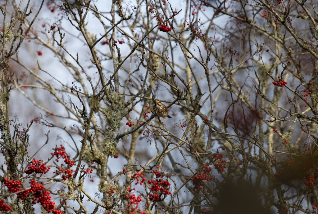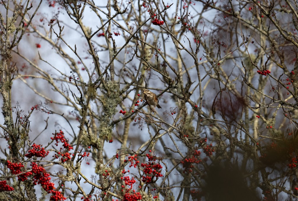 It’s November 14th 2024 and I’d been seeing Fieldfare and Redwing on the patch and knew there were a few Rowan trees down the lane that were heavily laden with berries so, I headed down there, see what I might see.