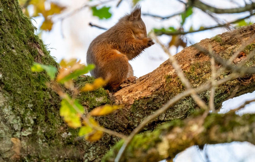 I was creeping slowly closer when it decided I was close enough and dashed further up the tree…… and sneezed!!!