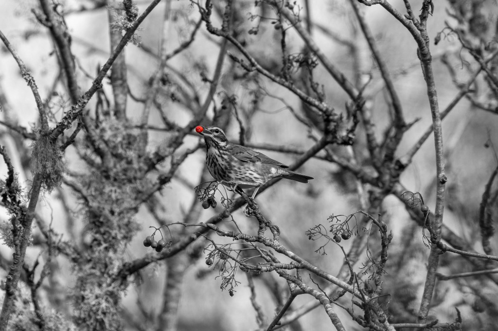 AÂ Redwing, once again hidden behind branches so, I’m standing very still and moving soooooooooo slowly ……that doesn’t really work, I need to rely on them being really hungry OR ….. get a hide.