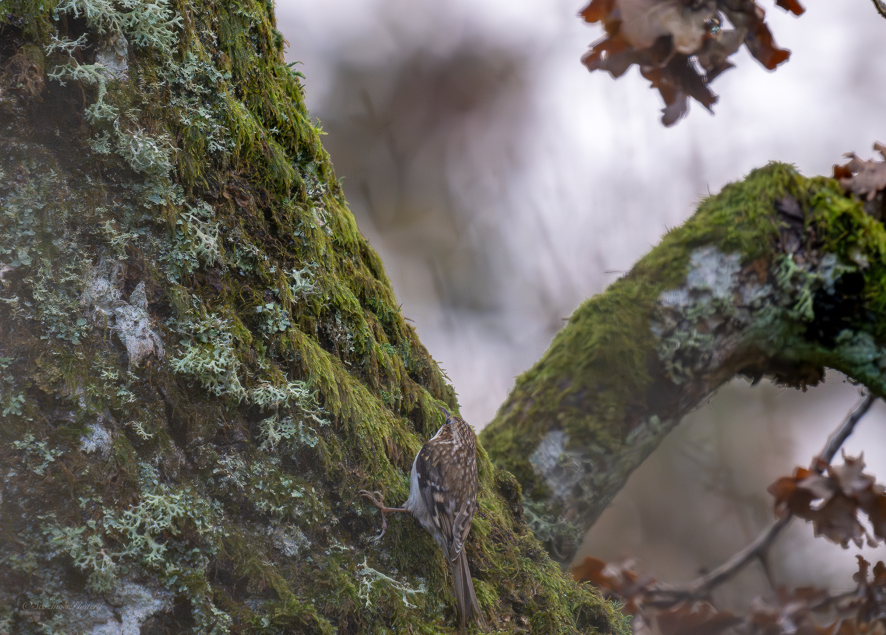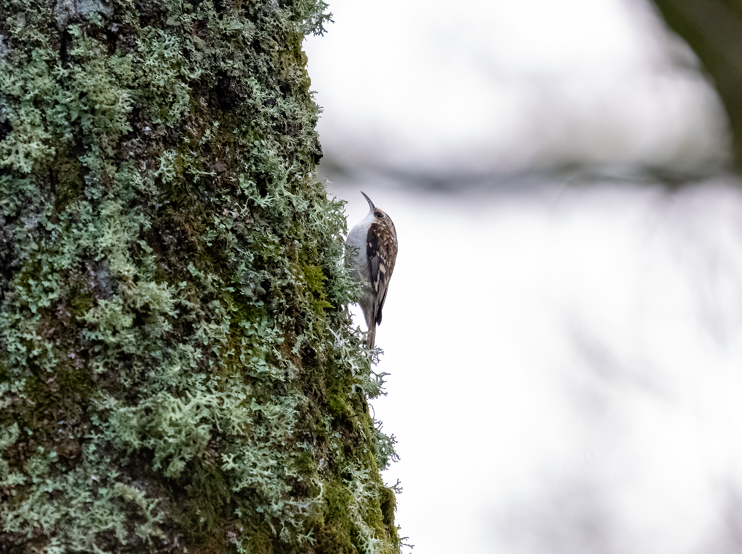It crept around nearby but didn’t come down until I backed away. I spotted a Treecreeper clambering around in the Oak branches above me.