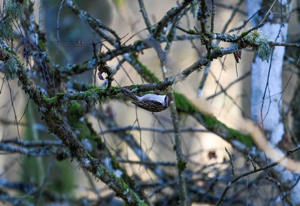 A Treecreeper, on a branch right in front of me, albeit a little further away. I’m always happy to get any decent shots of them, they’re not renowned for staying still for too long and the next one under lichen I was really pleased to get.