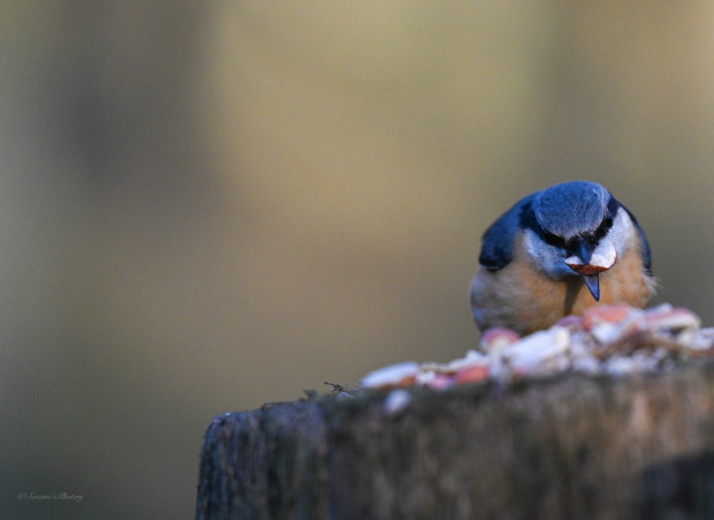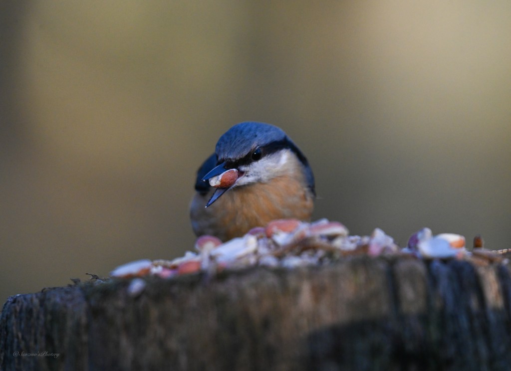 A Nuthatch dropped down and grabbed a peanut half. They are the real reason I was here, I’d first found them back in October, the squirrel was a real bonus.