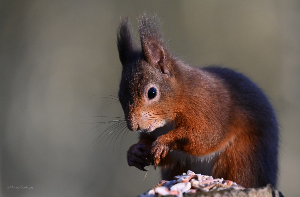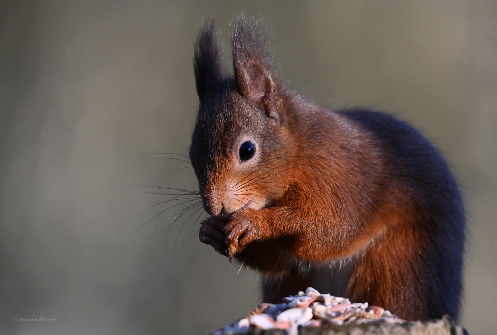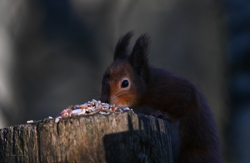 A Red Squirrel climbed the post and started munching. My position and the light couldn’t have been better, must remember the time.