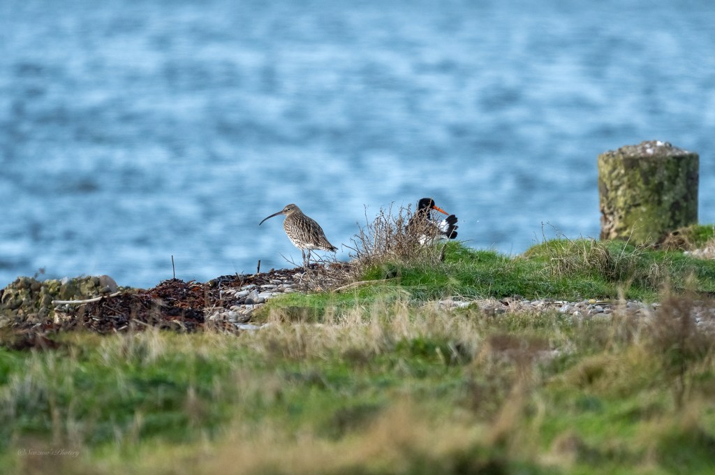 There were a couple of Curlews along the upper grassy area and an Oystercatcher or two.