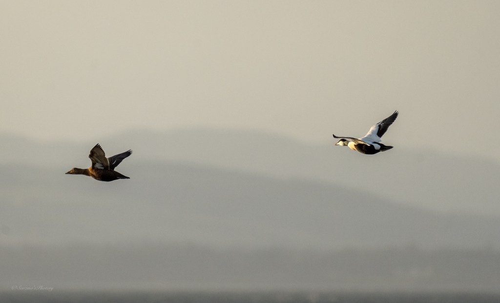 The point can be a great spot for fly past shots, these Eider are two of many that flew by.