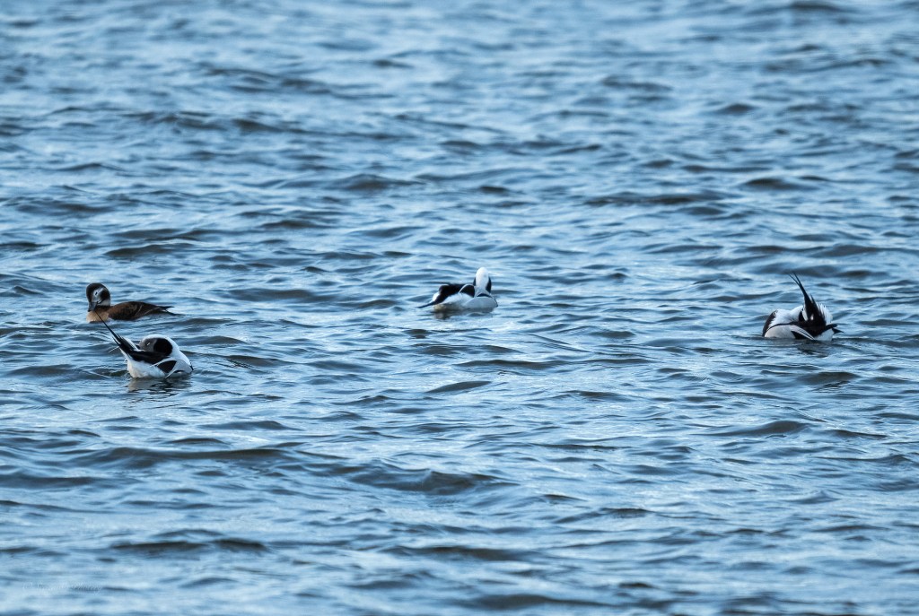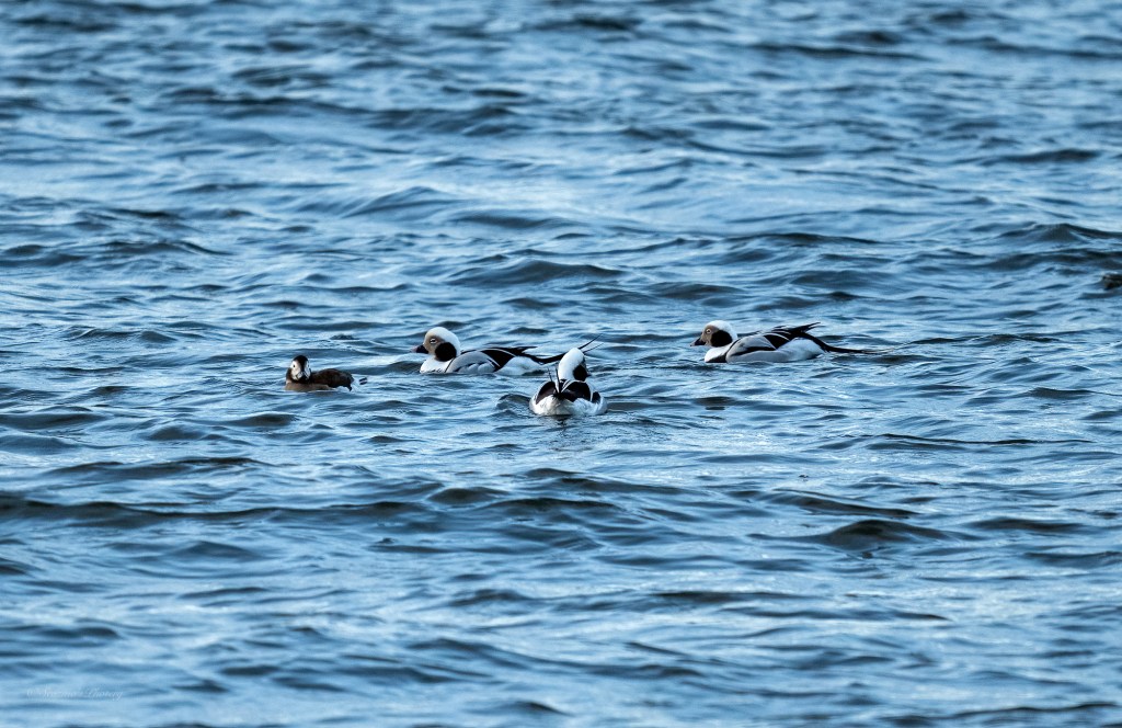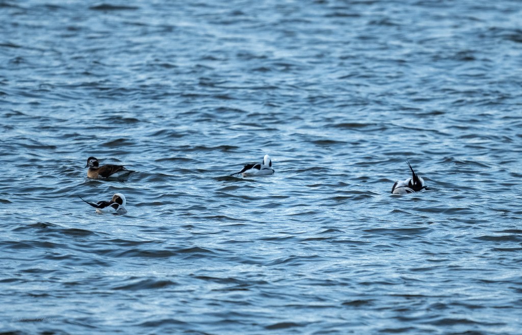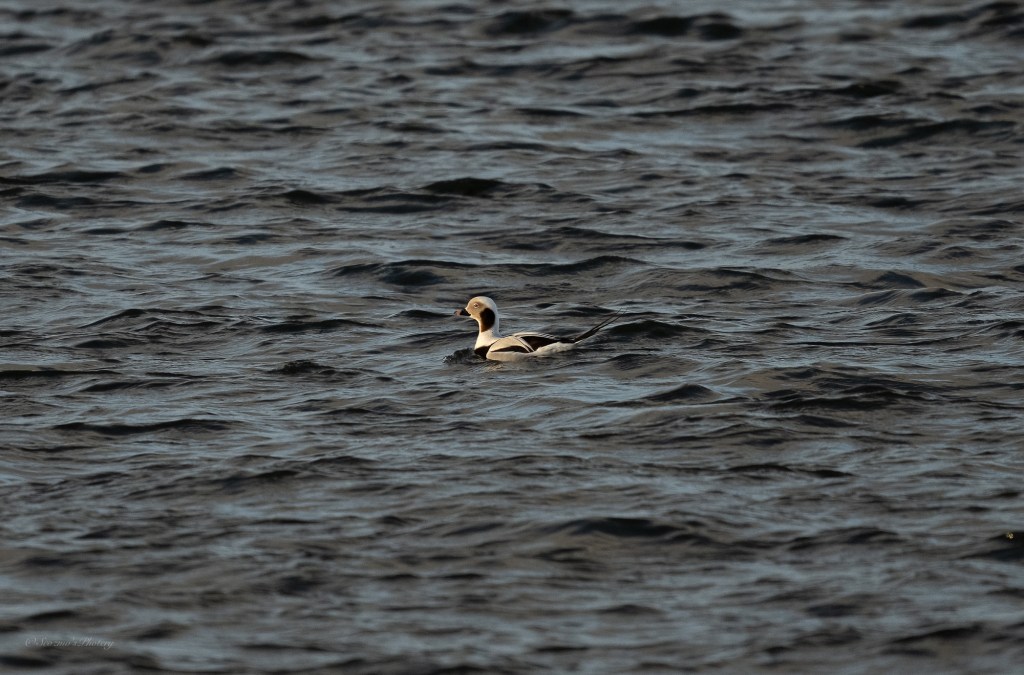 I eventually made it round the corner onto the point and noticed a small group of Long-tailed ducks just offshore.