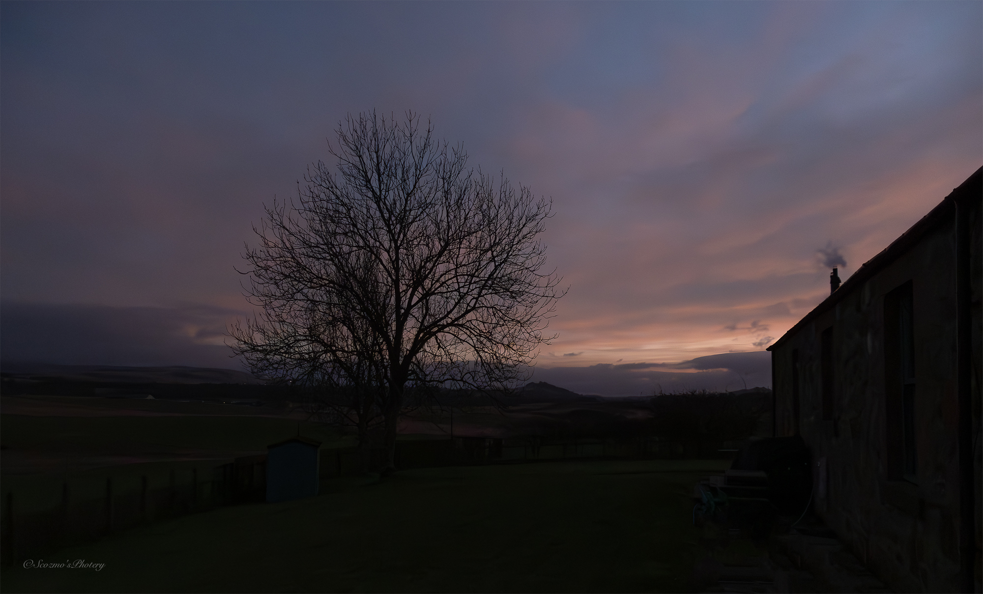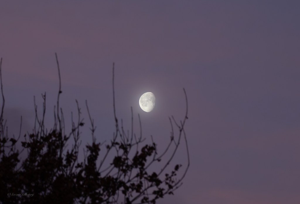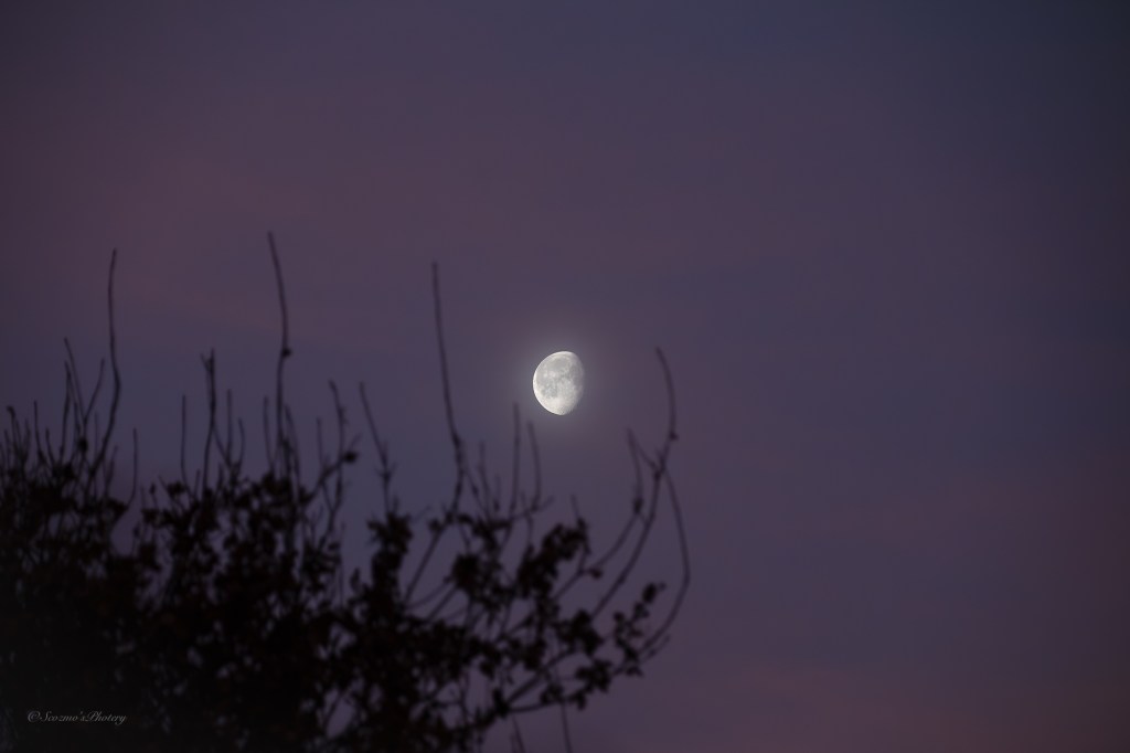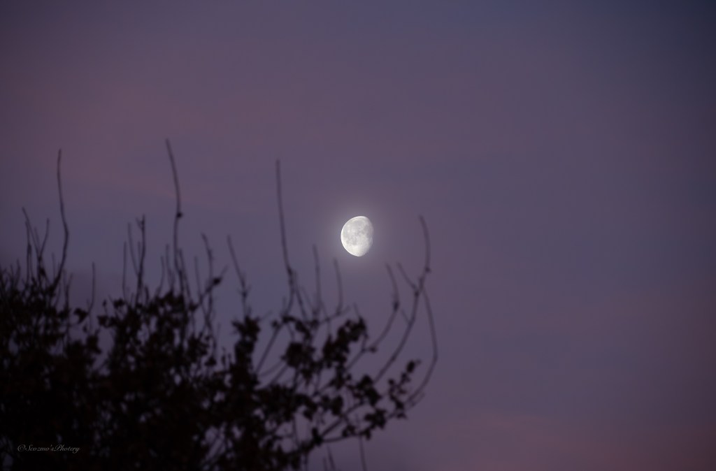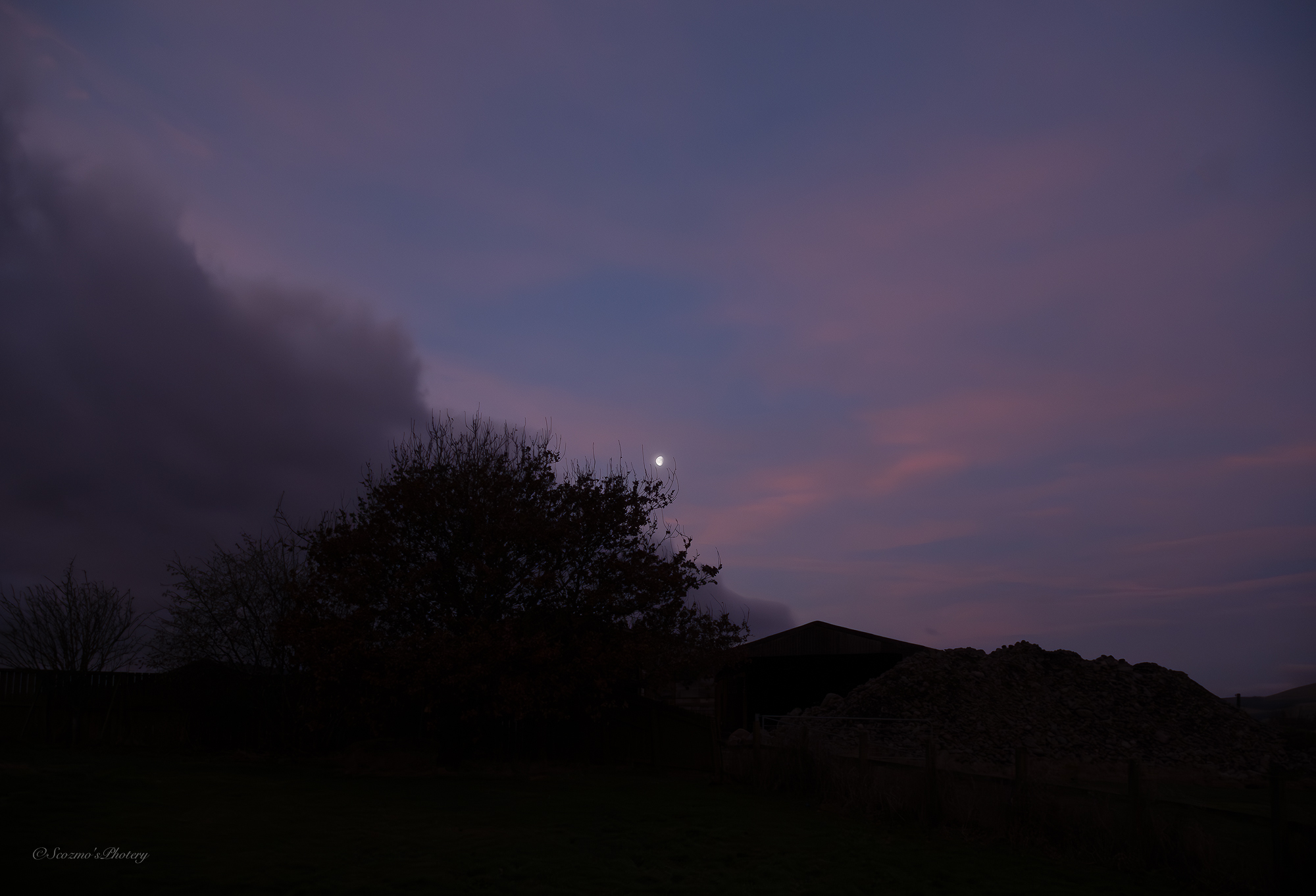 The waning moon was just going down behind the tree in the garden, I took a sequence of ever closer shots before that cloud front cover it.