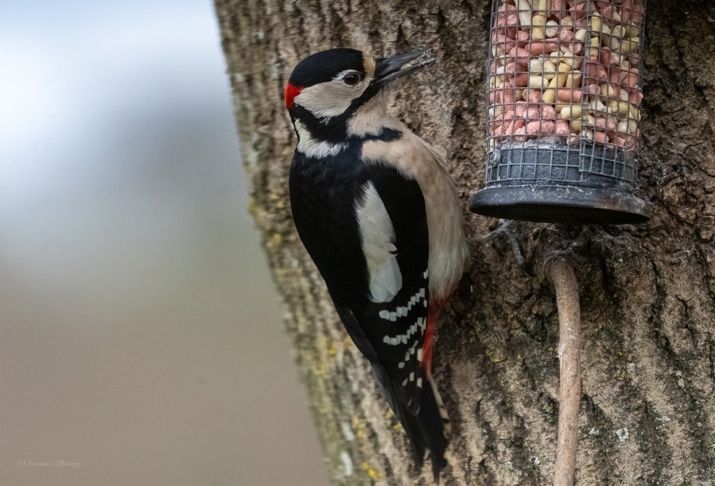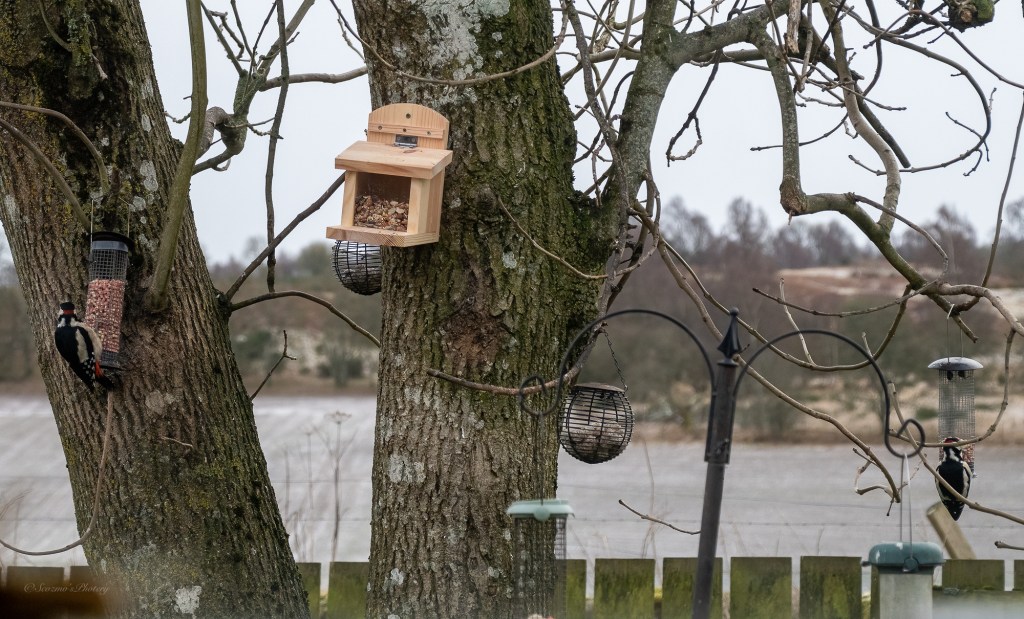 We have quite a few Great Spotted Woodpeckers that visit the feeders, in 2023 a pair brought their young for their first fledged feedings and I think that’s why we now have several visiting but, not usually together!