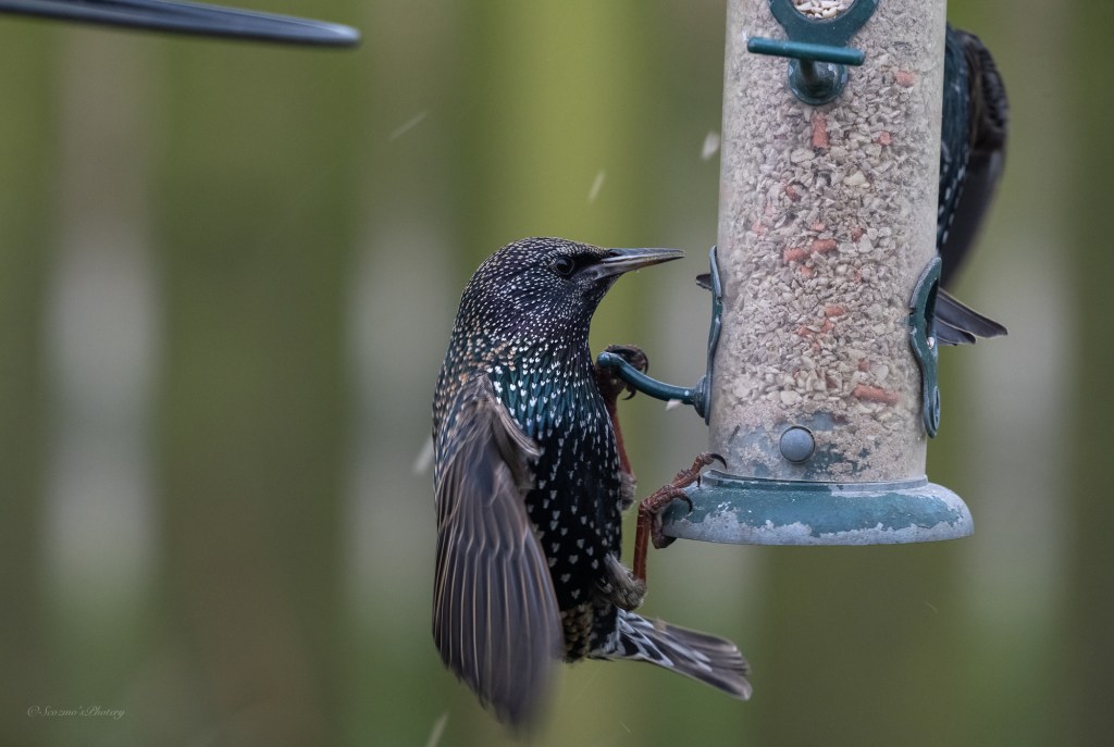 The GSW are often beaten off the suet feeder by Starling numbers.