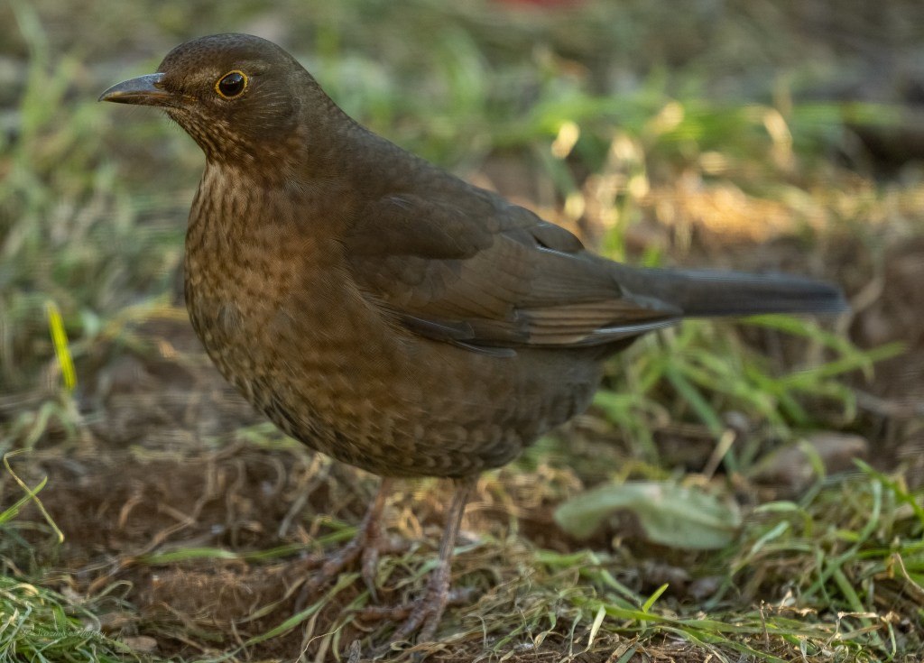 A lot of people mistake the female Blackbird for a Thrush, which it is, but only a member of that family.