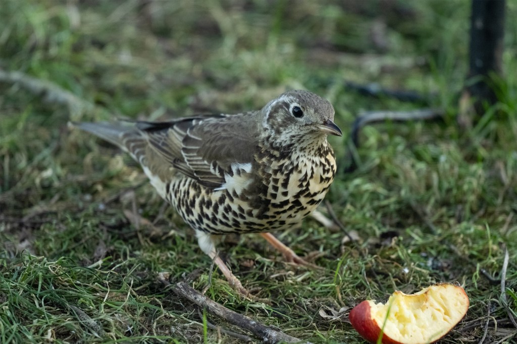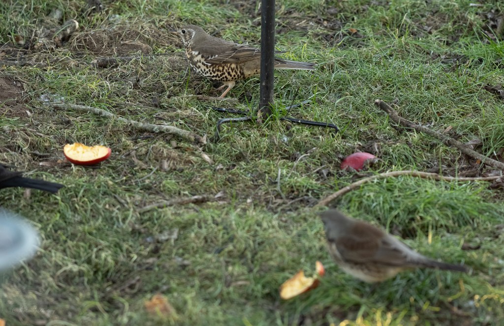And then there’s the Mistle Thrush! We had one visiting the garden last year and this one turned up on the 8th….. when the Fieldfare let it in!