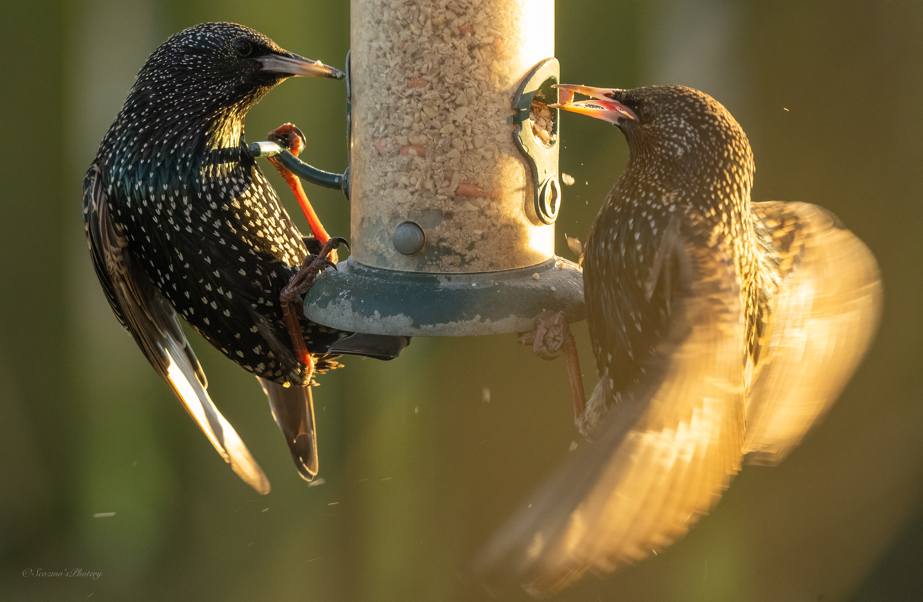 See, they cling on to those wee perches and flap their wings like mad, just for a few bits of Sunflower seed, they scatter more on the ground than they eat, I reckon.