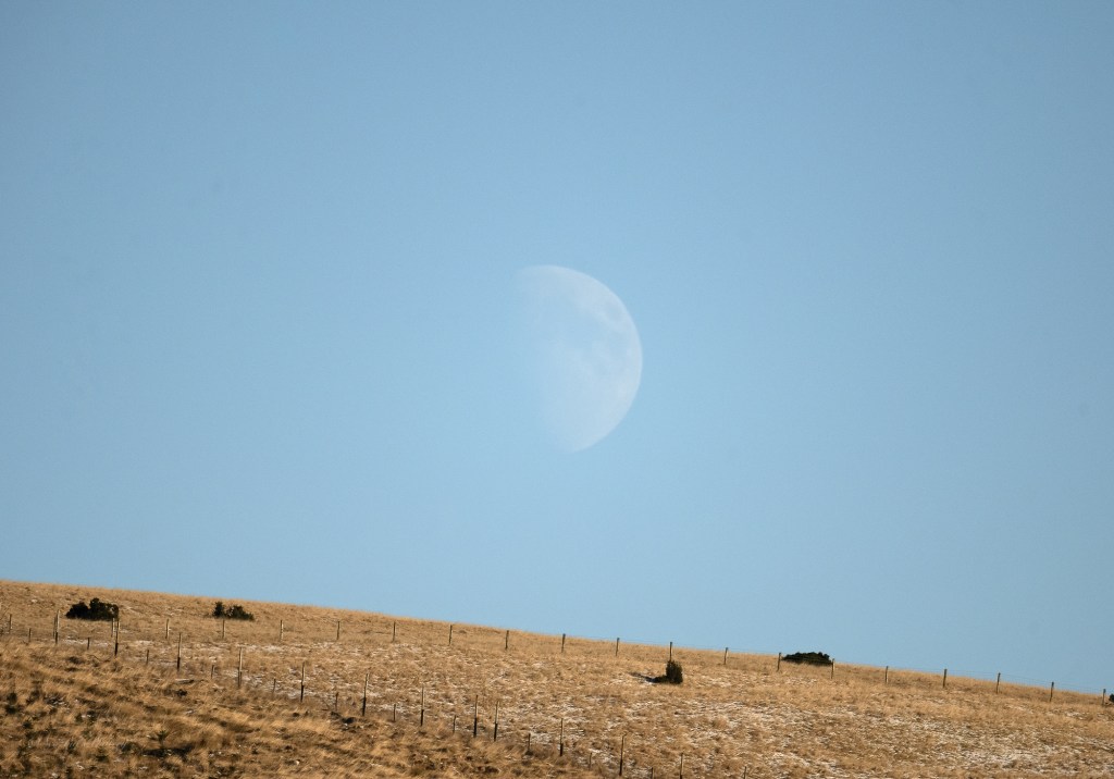 I was out for a walk on the 8th and spotted the Moon rising over the hillside across the reservoir.