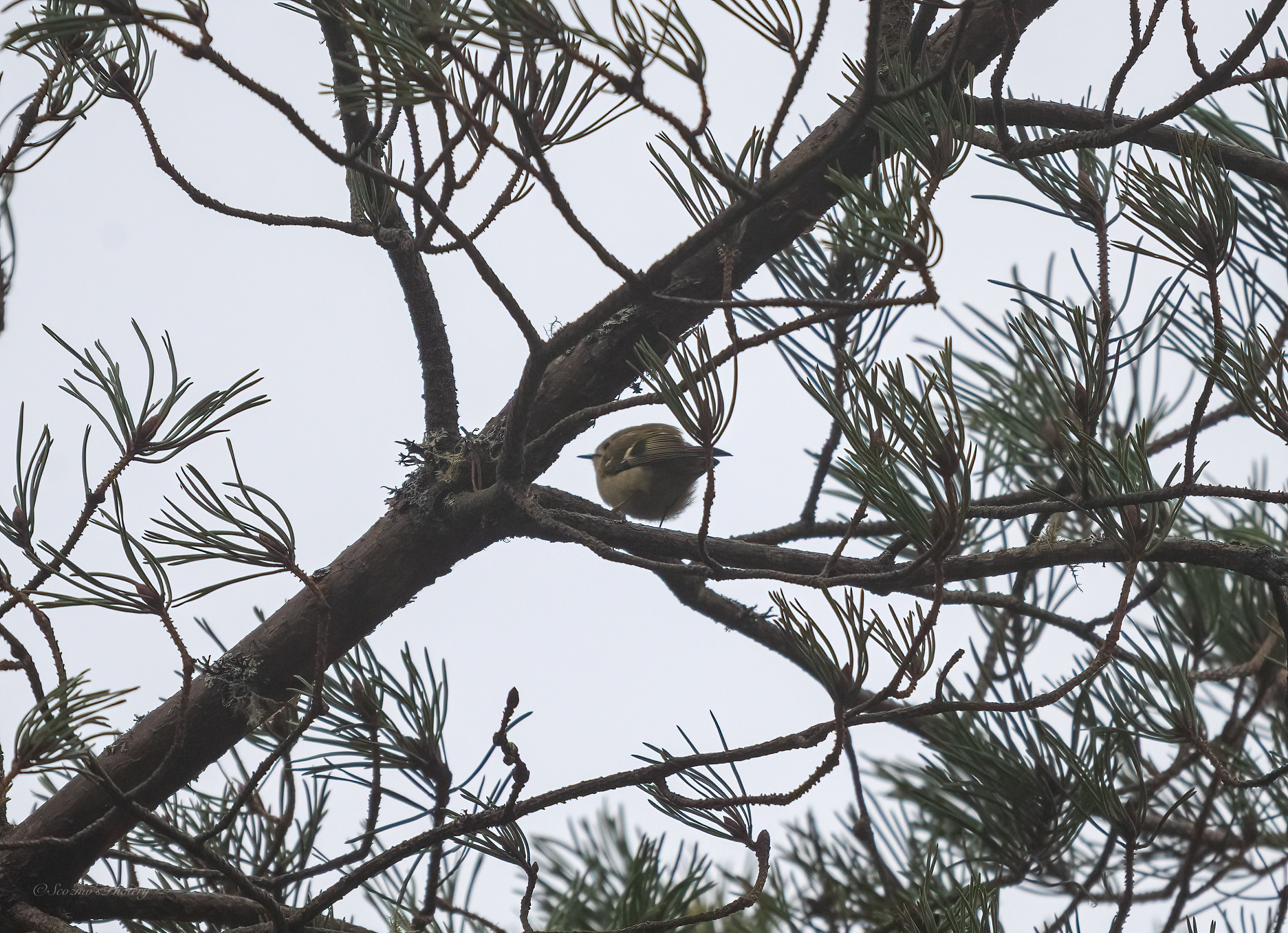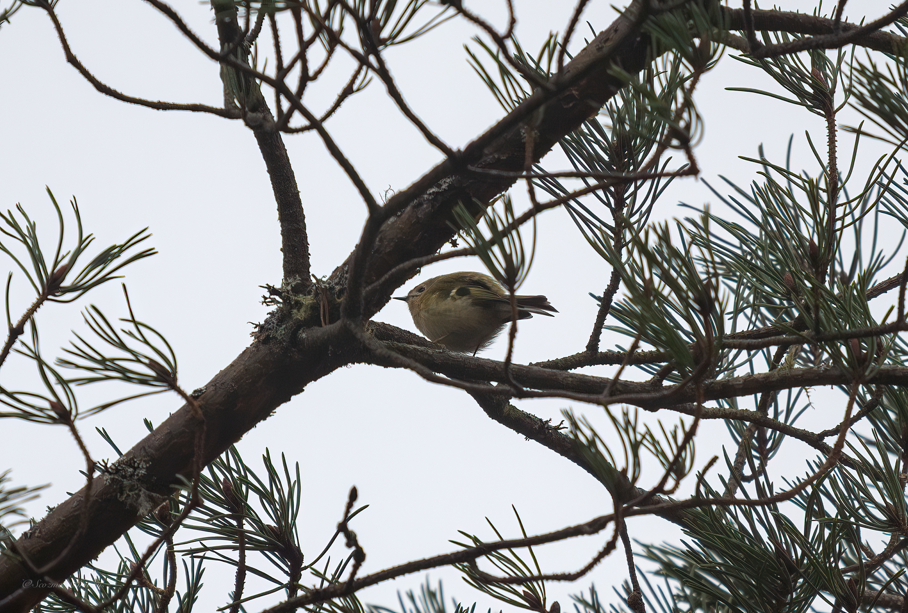 I just happened to turn towards a Scots pine behind me as a Goldcrest popped out onto a branch, I could have sworn it was a Firecrest but that would be too special for the area it was just a glimpse of bright orange on the head that fooled me, ach well.
