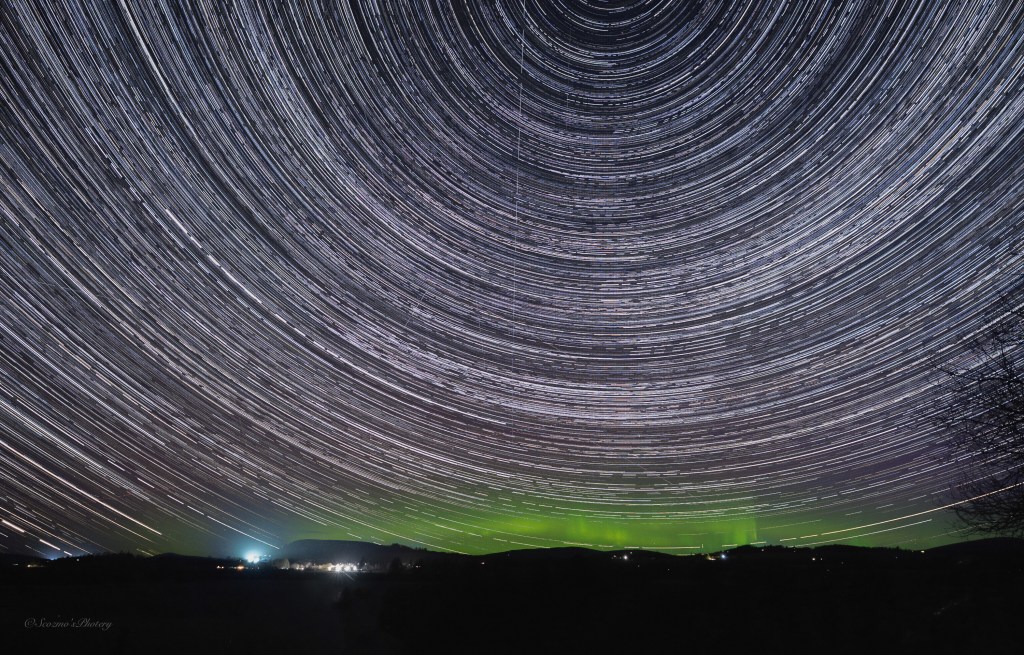 I labelled that one as shoogly star trails, I obviously had to have a look or tinker with the camera at some point so there’s a glitch in the smooth circular trails 🙂 Must not tinker with the camera!