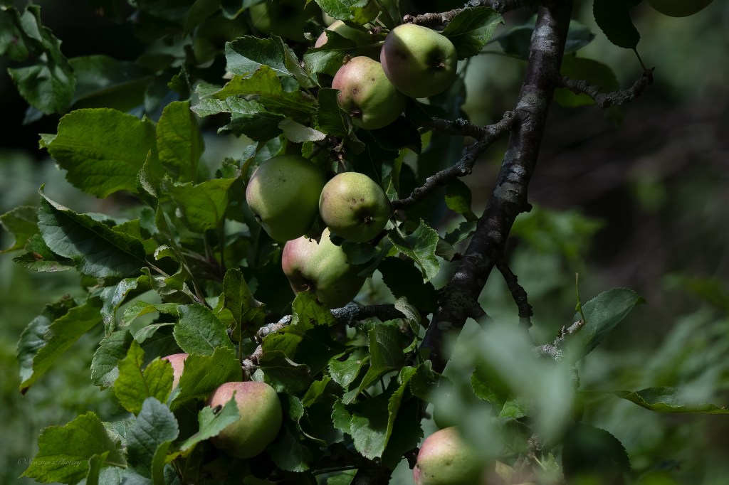 There are around 10-12 apple trees scattered around the woodlands along with Gooseberry, Cherry, Raspberry, Hazel ……