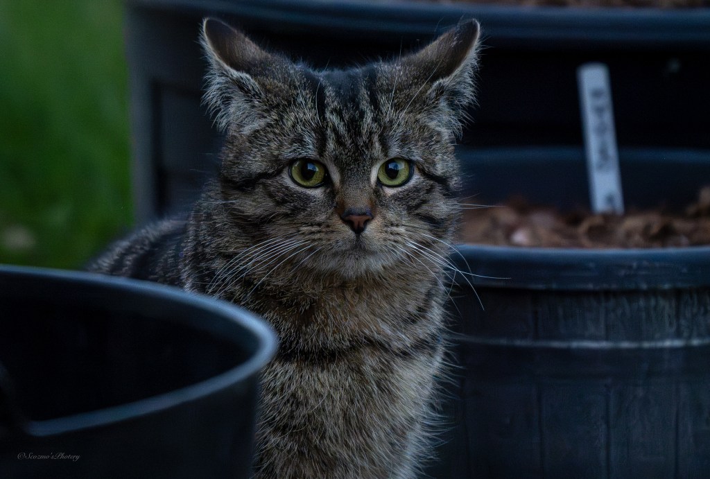If you remember, we live out in the country, on a working farm. That kitten just appeared on day, there are no cats on the farm, I’d seen no cats out and about on the surrounding land and yet, there it was and looking like it did, I had thoughts on it being a Scottish Wildcat hybrid and, I guess that’s still possible, some people I’ve spoken to when I’m out walking talk of wild cats in some of the glens, around five miles away, as the Crow flies so not an impossibility.