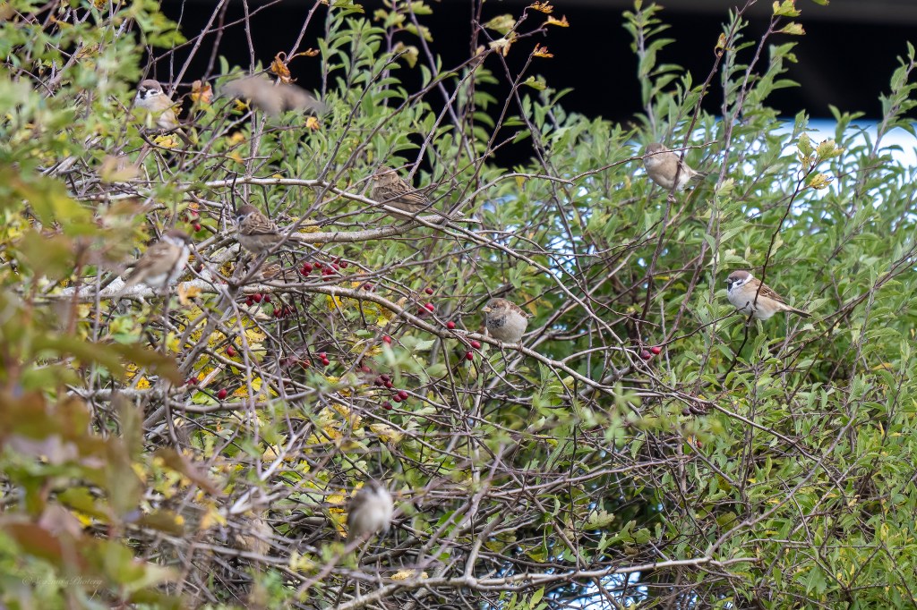 This small flock off mixed House & Tree Sparrows was sitting in the hedge end, we may not get many migrants or rarities up here but I LOVE that we have both Sparrows. 🙂