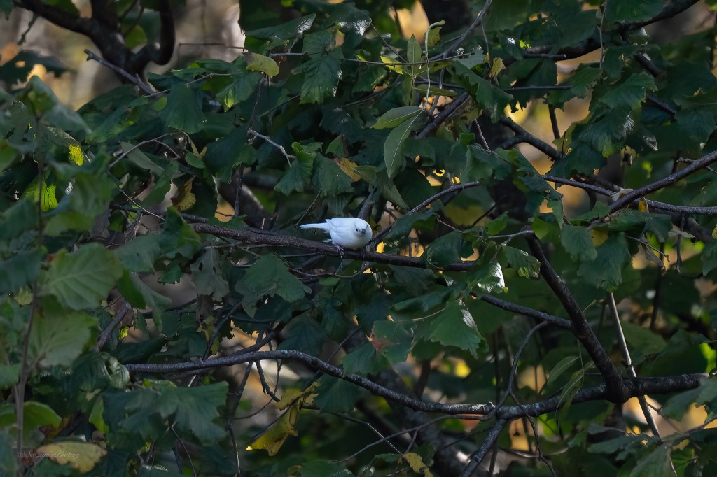 I walked down on three days running this week and on the first day, as I left the road and walked onto their property I saw it! It had been in the trees lining the road but flew over my head and disappeared into the wood at the back of their garden. Believe me when I say it is pure white, it cannot be mistaken for any standard small bird in this country but, that day, although I saw it a few times, I never got the chance of any shots.