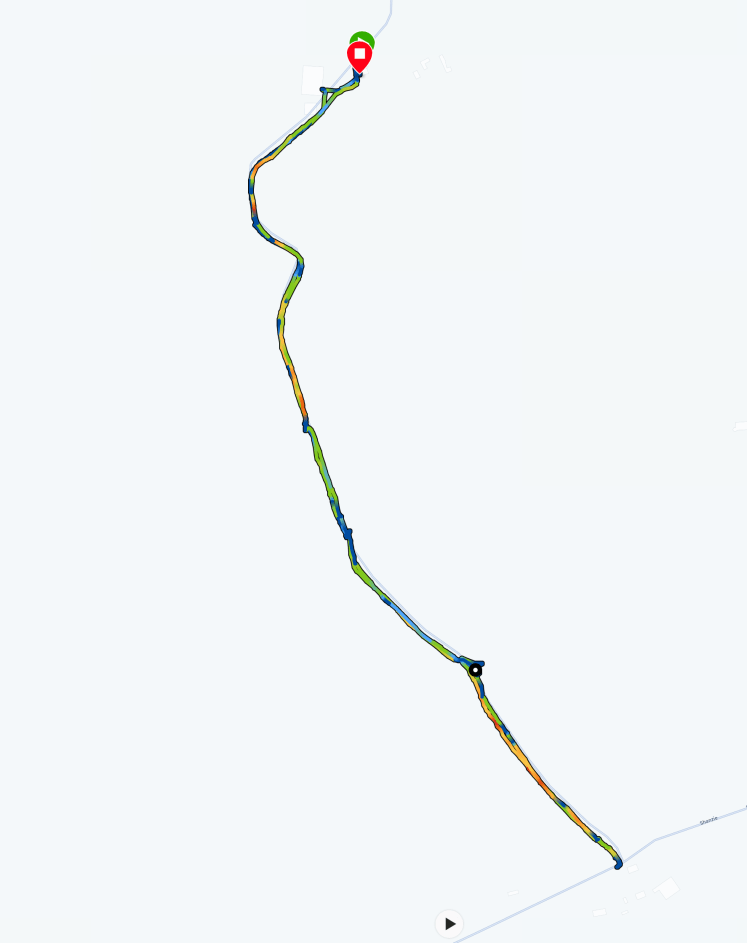 The end of that section goes green, yellow, orange pretty quickly if I choose that route through the woods, it is fairly steep, pretty wet at the bottom but gives me a decent workout.