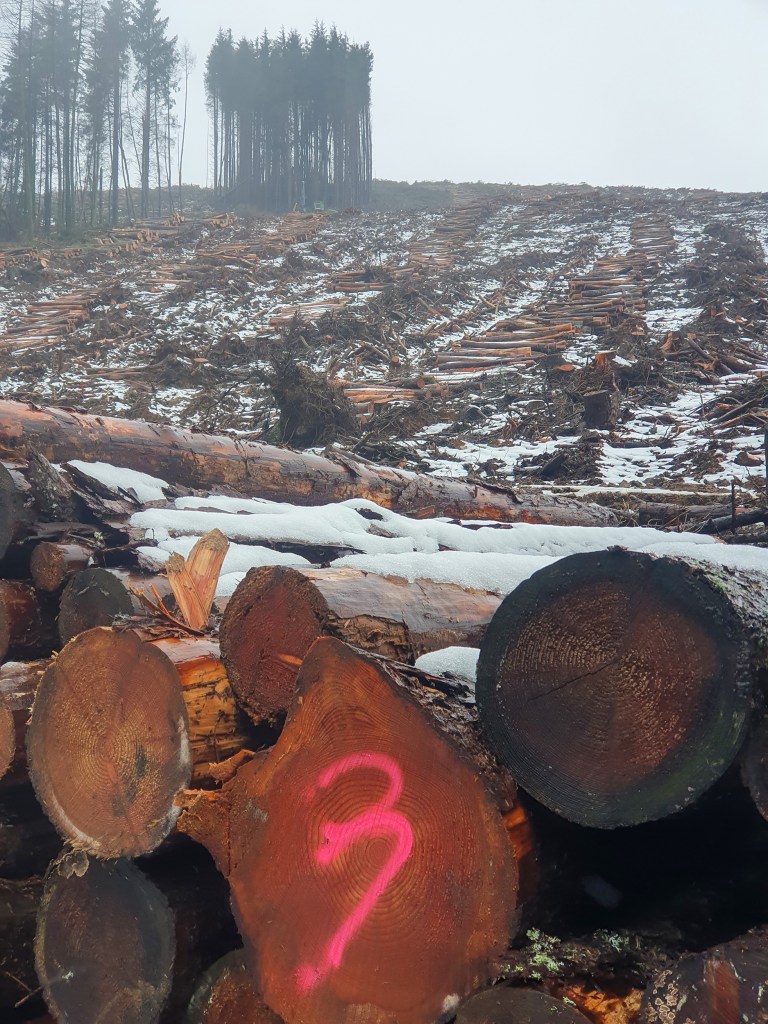 Only me! I soon realised that the numbers sprayed onto these piles was the wood length!