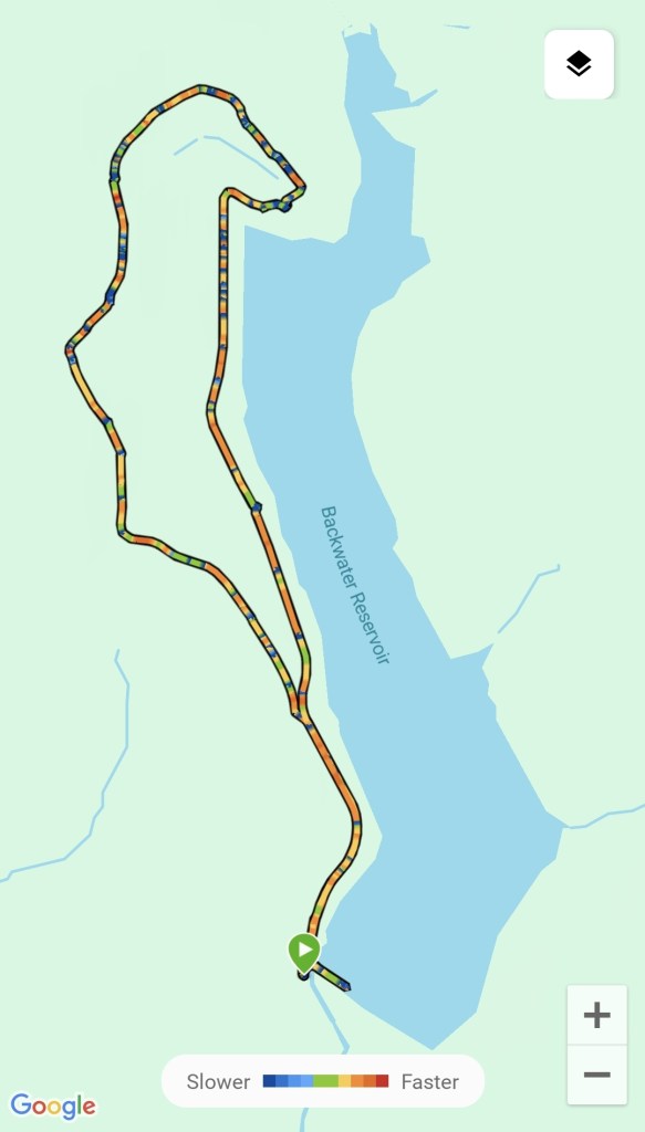 I decided to get as many shots as I climbed to try to show the hill, track and the view of the reservoir so, looking back then looking up the hill ahead.