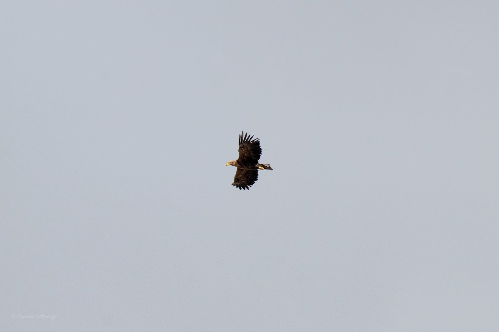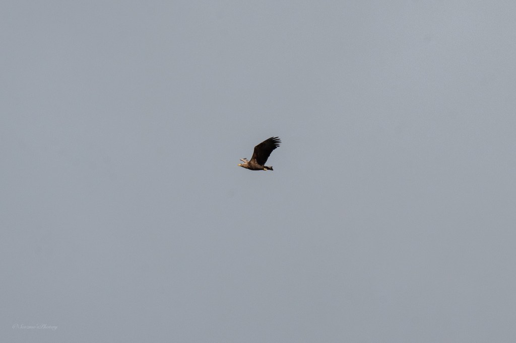 It’s an Eagle! Looks like a White-tailed Eagle. It was flying up the estuary from the sea and over towards the town and beyond, I doubt anyone noticed. There’s a huge water basin and nature reserve beyond the town but I’d guess this one was heading for the hills beyond.