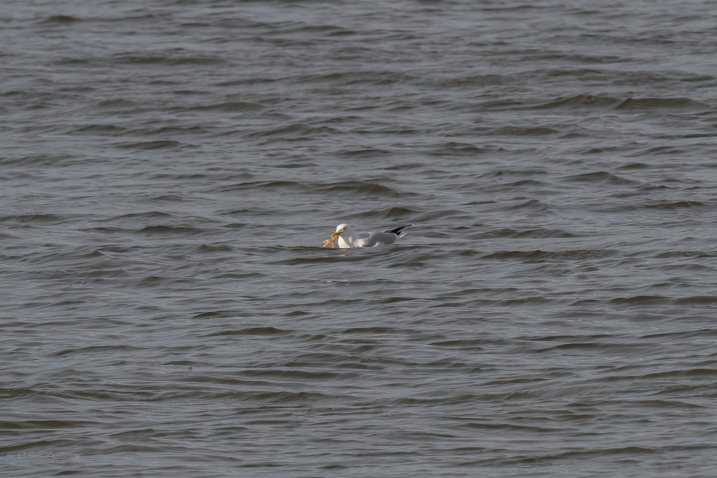 Suitably dressed up for the walk, cameras etc. slung over shoulders, off we went. Jo stopped to read one of the information signs dotted along the path and I slowly meandered ahead, looking all around, watching House Sparrows flitting in and out of a pile of lobster pots. I looked up and out towards the sea …… there’s a bird …… a Heron? Camera out, fire off a few shots, check …..