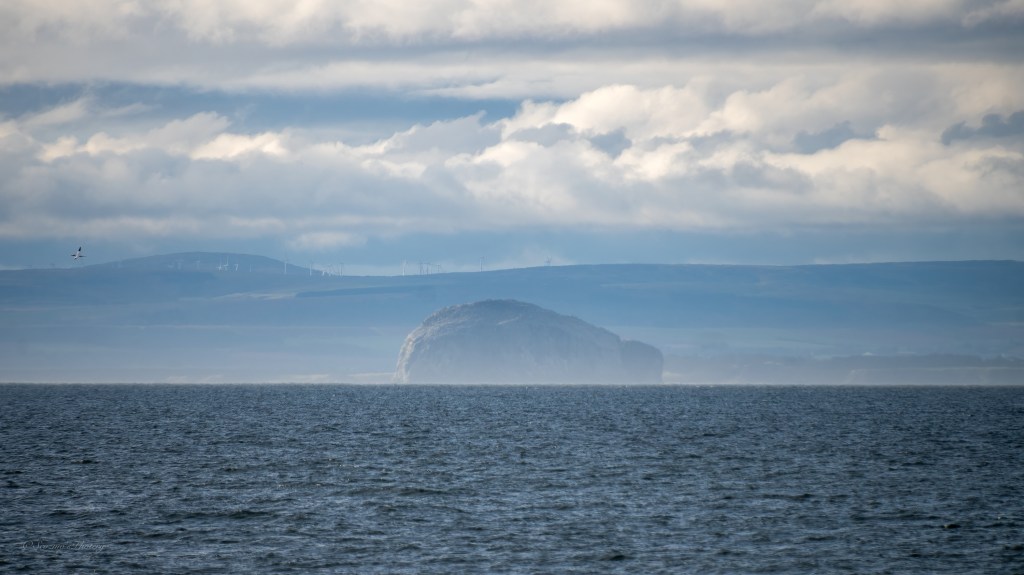 Across the Firth of Forth lies Bass Rock, known as a Gannet habitat and one of the largest Gannet breeding sites in the world, that’s what gives it it’s distinct white coat 🙂