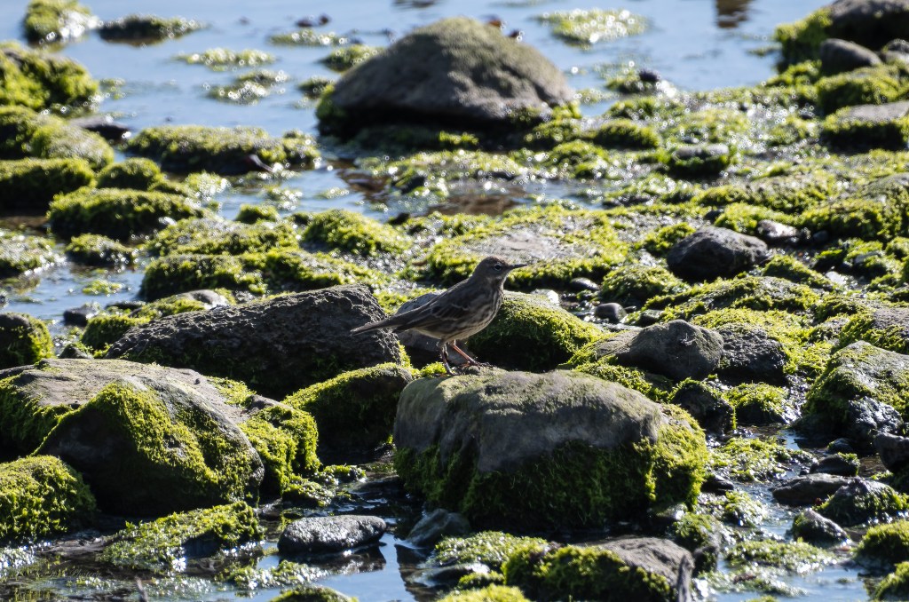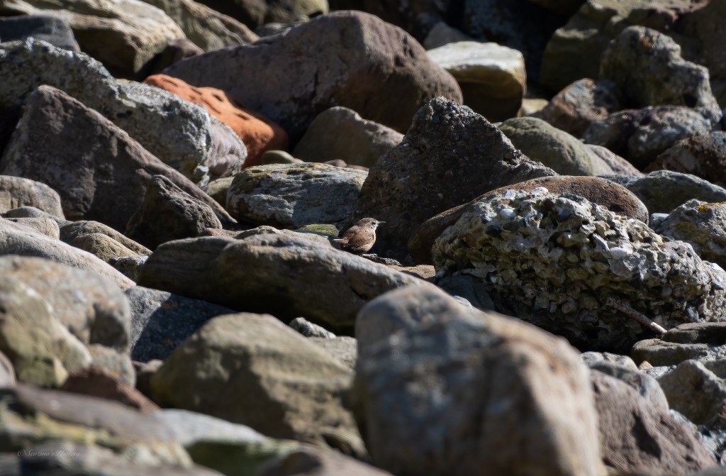 There were loads of Pipits foraging on the rocks, that being a Rock Pipit! I spotted a Wren foraging in the weed and rocks.