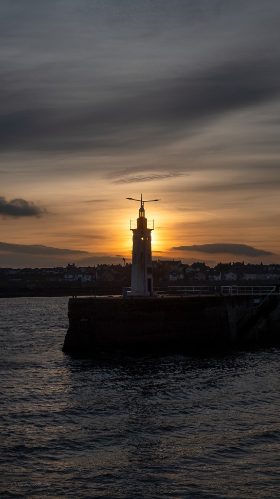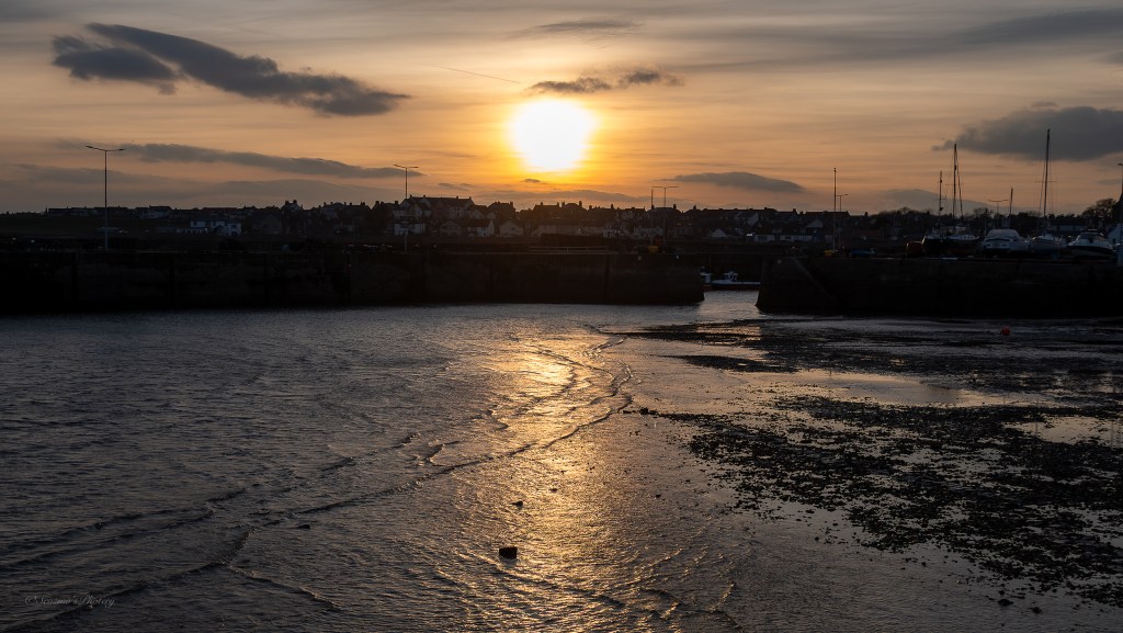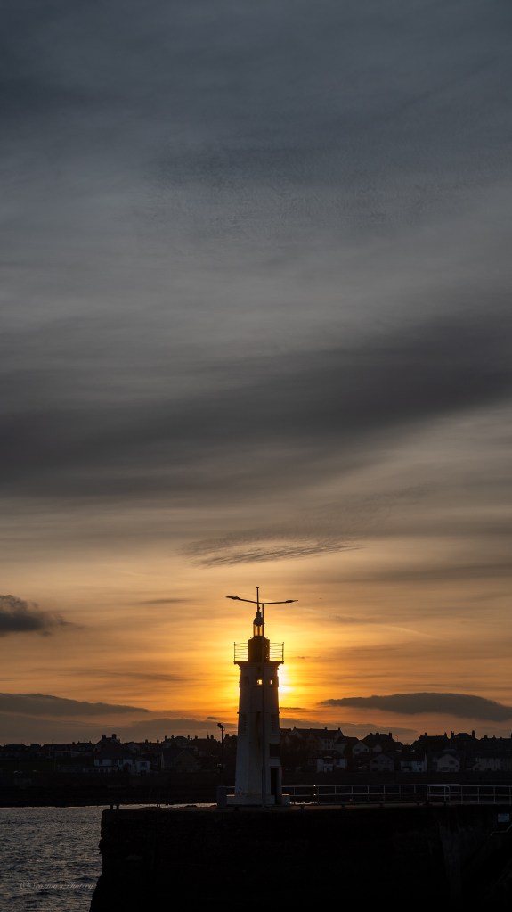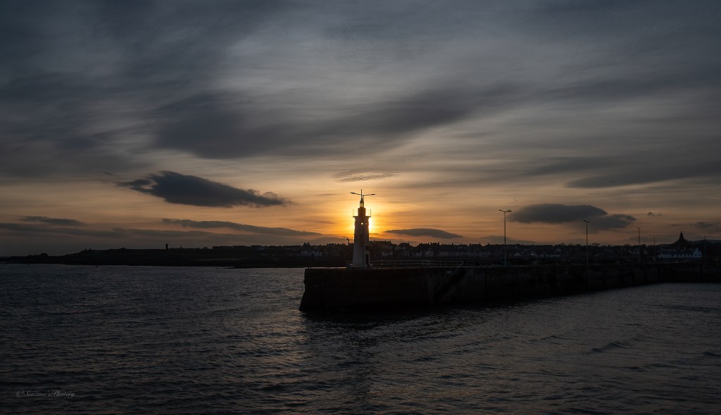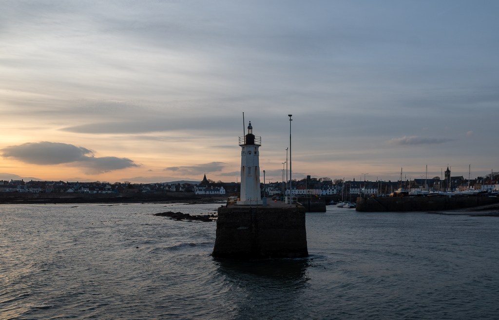 I ended up looking out of the apartment window and seeing a beautiful evening sky going on so decided to take w alk into Anstruther for sunset photos and mum came along with me. Anstruther has multiple harbours and there’s a very old lighthouse on the end of a central pier.